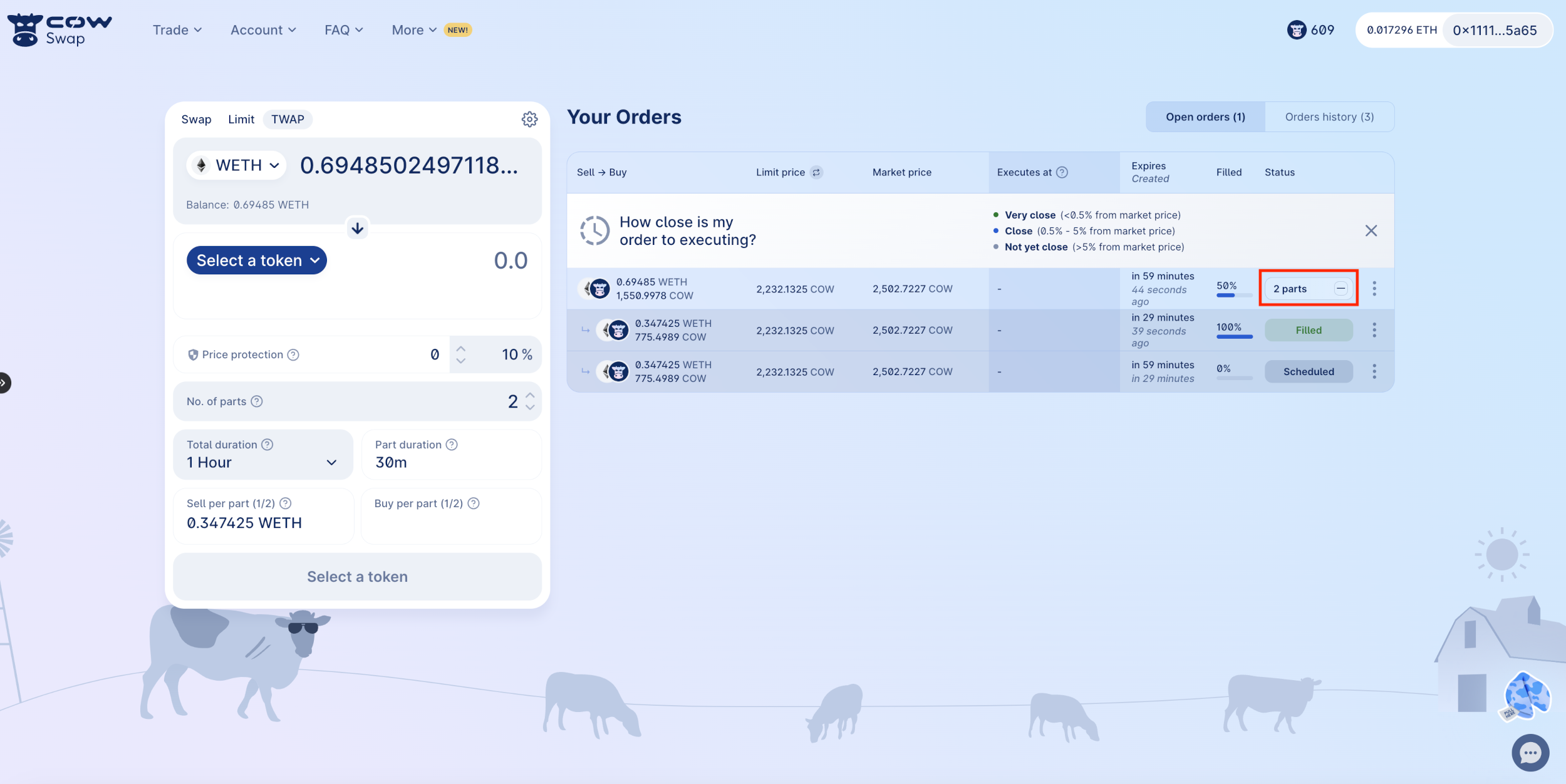 TWAP orders are a strategic approach for large trades, reducing price impact and securing better average prices. Try it out and let us know your experience at info@cow.fi!